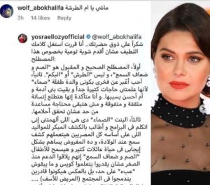 أعلنت الفنانة المصرية يسرا اللوزي مؤخرًا؛ استنكارها للتنمر الذي طال ابنتها عبر أحد التعليقات المسيئة عبر إنستجرام. فقد وصفها أحد التعليقات بأنها «أم الطرشة». وذلك عقب ظهورها إعلاميا والحديث عن مشكلة ابنتها في القدرة على السمع بشكل طبيعي. وأشارت يسرا اللوزي في تعليقها إلى أنها فخورة بأنها أم لطفلة صماء ستصبح إنسانة متفوقة ومثقفة وتعتمد على نفسها بدون أن تكون عبئا على أحد. مقدمة توعية بخصوص مصطلح “الطرش”.