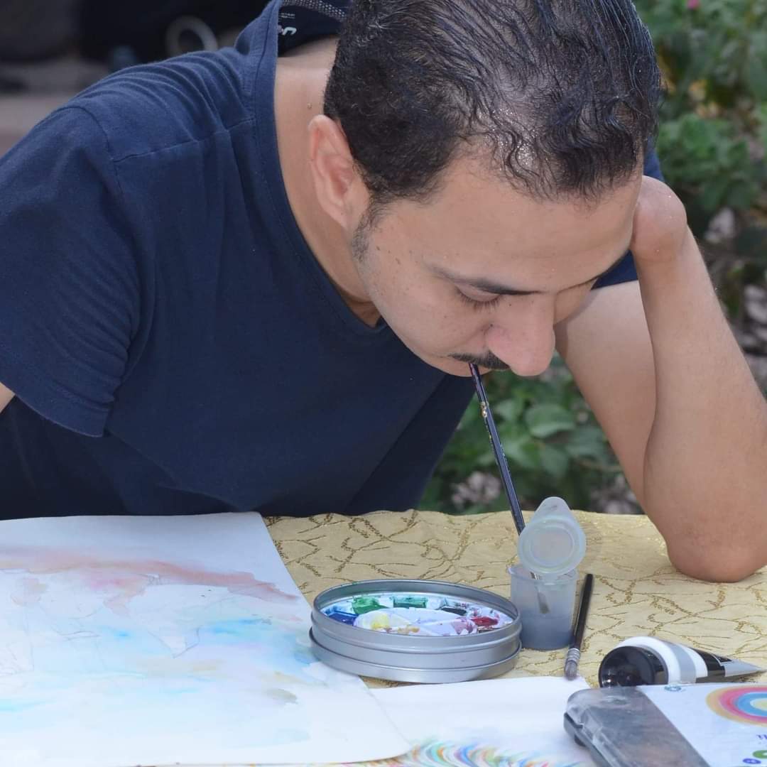 وتابع: «حرصي على دخول مجال الفن التشكيلي أثبت أن صاحب الإعاقة يمكن أن يعمل في أي مجال، ويستطيع أن يدرس في أي مجال دون أي عوائق ولا ترتبط إعاقته بممارسته لمهنة معينة».