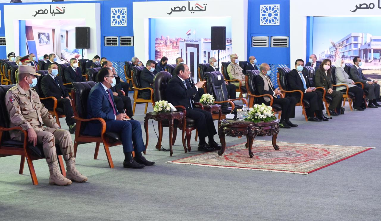 واستمع الرئيس السيسي إلى كلمات وزيرات الصحة والتضامن الاجتماعي والتخطيط فضلا عن كلمة رئيس الهيئة الهندسية.