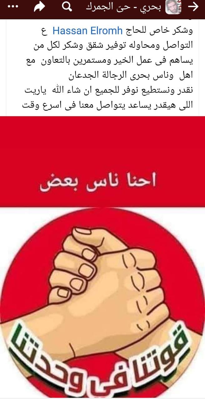 وكتبت حنان محمد :” بجد ناس بحري وأهل بحري جدعان أوي في الشدة ربنا يجعلكم مترابطين دايمًا في المواقف والشدة ويارب يعوض المتضررين.