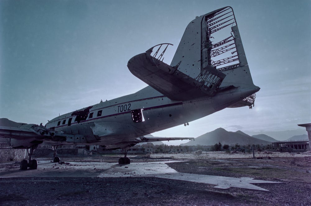 ويتابع «كانت المروحيات المحطمة والطائرات ووحدات الرادار العسكرية والمدافع المضادة للطائرات على جوانب المطار، وكل المروحيات مليئة بثقوب الرصاص. كانت طائرة نفاثة تابعة لشركة «أريانا إيرلاينز» متوقفة على مدرج المطار، لكن عندما نظرت عن كثب، رأيت قطعًا منها قد تحطمت بسبب هجوم صاروخي. كان مبنى المطار بدون كهرباء ، وكان من المدهش تقريبًا أن يتم ختم جواز سفري في الظلام».