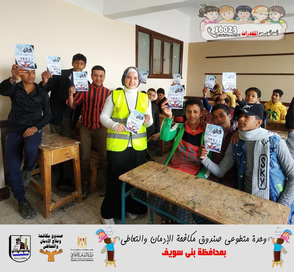 وتم شرح آليات عمل الخط الساخن “16023 لعلاج الإدمان وكذلك الرد على كافة الاستفسارات المتعلقة بأضرار تعاطى المخدرات وتصحيح المفاهيم المغلوطة عن تعاطى المخدرات، من كون المخدرات تساعد على التركيز وتنشيط الذاكرة، واختيار الأصدقاء وغيرها من المفاهيم والمعتقدات الخاطئة لدى البعض، بالإضافة إلى تنفيذ عدد من الأنشطة التوعوية والبرامج التدريبية لوقاية الطلاب وتوعيتهم بمخاطر الإدمان ، كما تم تنفيذ البرامج التوعوية في 860 مركز شباب على مستوى الجمهورية .