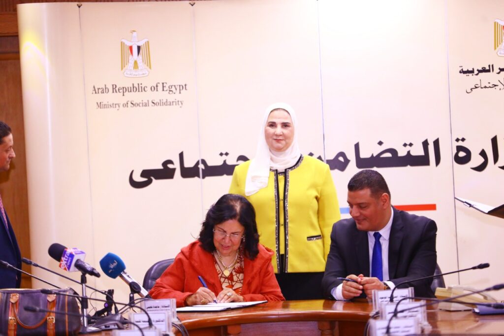 وقع البروتوكول من جانب وزارة التضامن الاجتماعى أيمن عبد الموجود مساعد الوزير لشئون مؤسسات المجتمع الأهلي ومن جانب جمعية نداء لتأهيل الأطفال الصم وضعاف السمع ماجدة أحمد فهمي رئيس مجلس إدارة الجمعية.